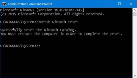 Step 2: type the command netsh winsock reset or nets int inp reset