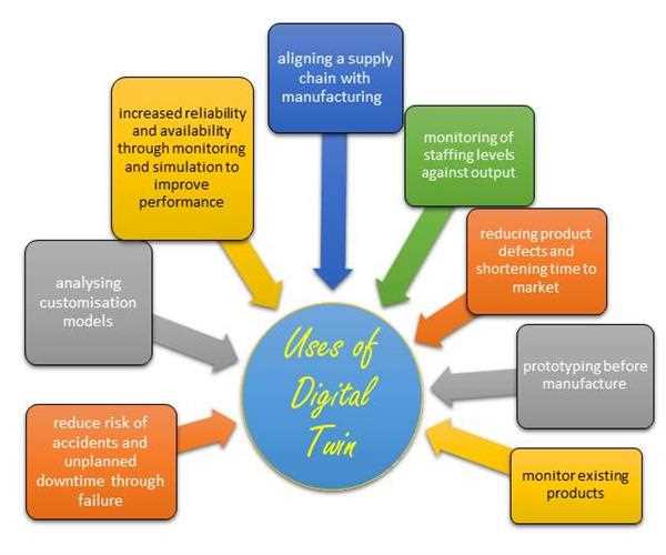 The biggest reason for using a digital twin model is to save time and money whenever a product or process needs to be tested in design, implementation, monitoring or improvement. By using a digital twin for doing so, scientists or manufactures could easily detect the model & the problems associated with it. Other uses include: